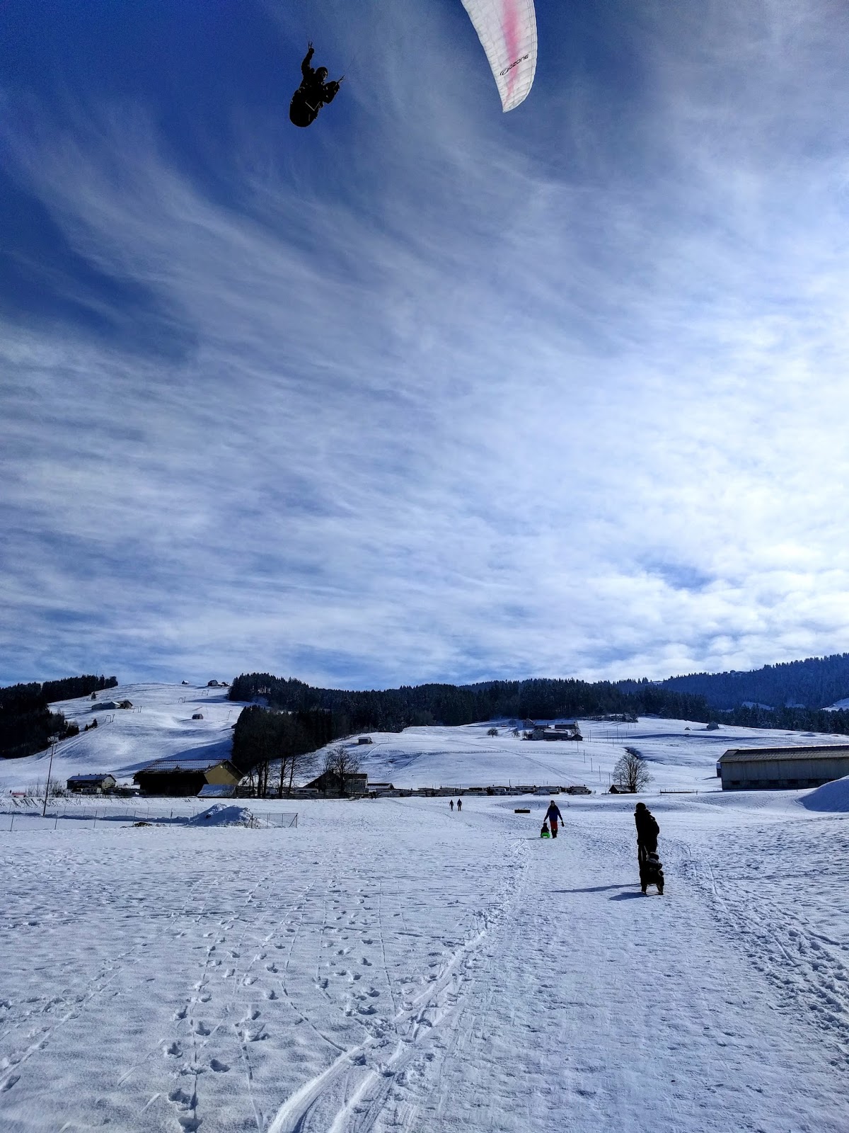 Вывод: всё здесь вполне прилично, ехать можно. Только в следующий раз я возьму фотоаппарат - здесь были такие красивые места, что недофотограф во мне просто завывал от тоски и печали, пытаясь словить нужный момент камерой телефона. И ещё я сюда вернусь летом - это же мой любимый кантон, где травка зеленеет зеленее обычного, где коровки особенно откормлены, где вкусный сыр и вообще всё замечательно. А пока что всех зову с нами на санки - ребёнок требует компании!